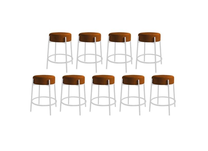 O menor preço encontrado no Brasil para Kit 09 Banquetas Alta Sintra 65cm Redonda Ferro Branco Suede Terracota - Ahazzo Móveis atualmente é R$ 2.429,90.