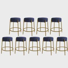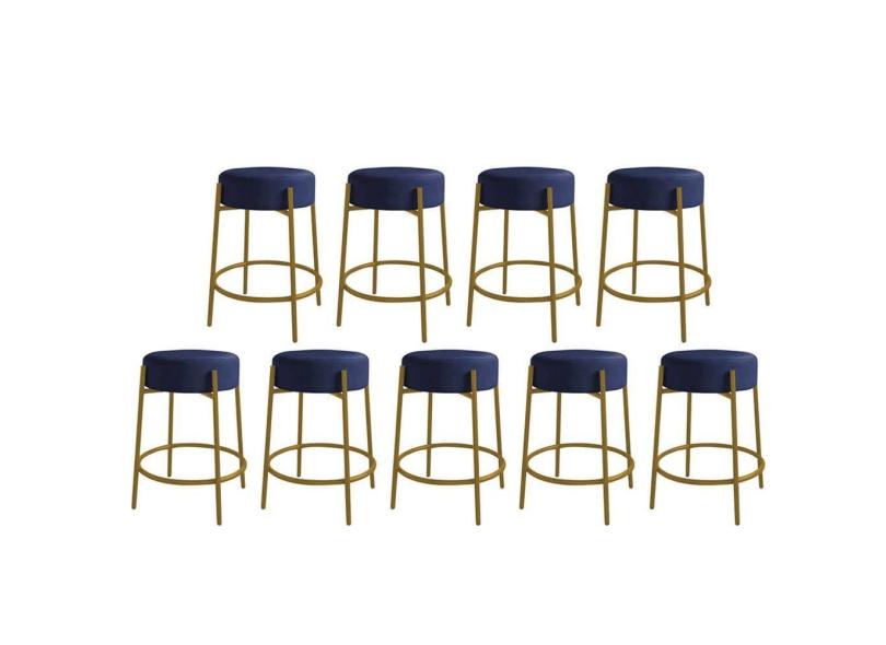 O menor preço encontrado no Brasil para Kit 09 Banquetas Alta Sintra 65cm Redonda Ferro Dourado Sintético Azul Marinho - Ahazzo Móveis atualmente é R$ 2.519,90.