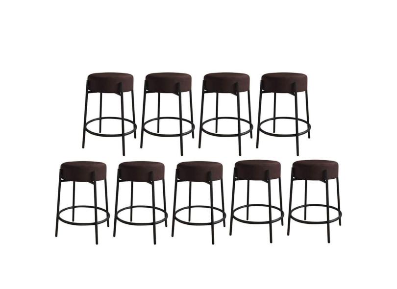 O menor preço encontrado no Brasil para Kit 09 Banquetas Alta Sintra 65cm Redonda Ferro Preto Corino Marrom - Ahazzo Móveis atualmente é R$ 2.519,90.