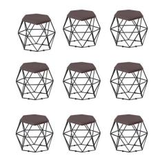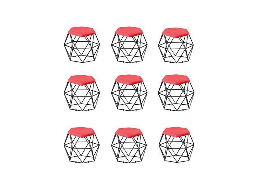 Kit 09 Puff Banqueta Aramado Mila Base Preta Hexágono material sintéti