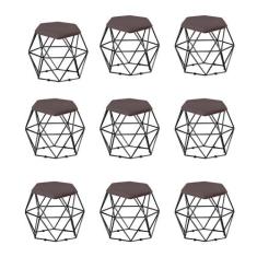 Kit 09 Puff Banqueta Aramado Mila Base Preta Hexágono Suede Marrom - K