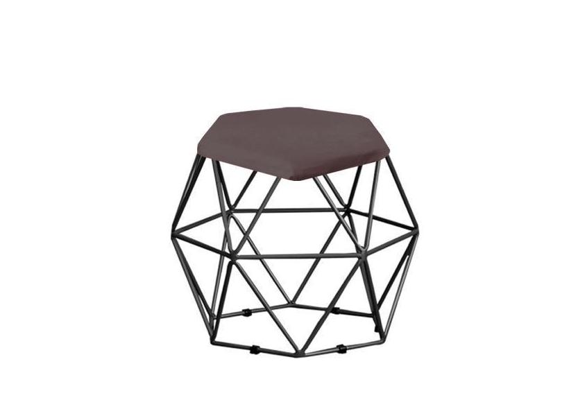 Kit 09 Puff Banqueta Aramado Mila Base Preta Hexágono Tecido Sintético