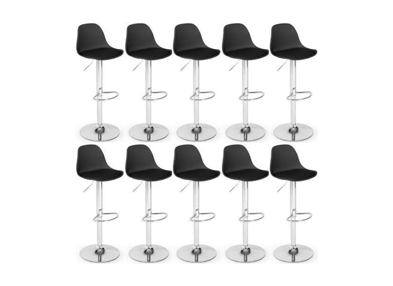 Kit 10 Banqueta Alta Leda Estofada com Base Giratória e Regulagem de Altura - Preto
