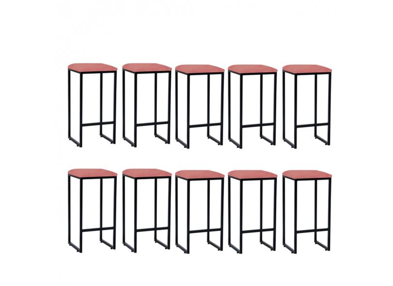 Kit 10 Banqueta Alta Lua Industrial Cozinha Bar Balcão Bistrô Ferro Suede Rose Gold - Ahazzo Móveis