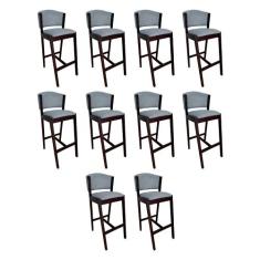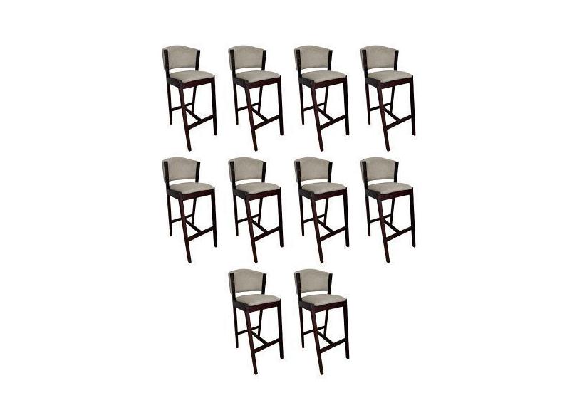 Kit 10 Banquetas Alta De Madeira Maciça Castanho Premium Ana Com Encos