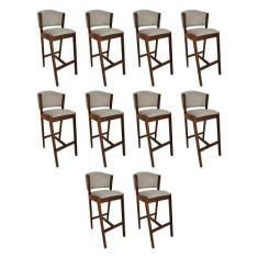 Kit 10 Banquetas Alta De Madeira Maciça Mel Premium Ana Com Encosto Linho Cinza