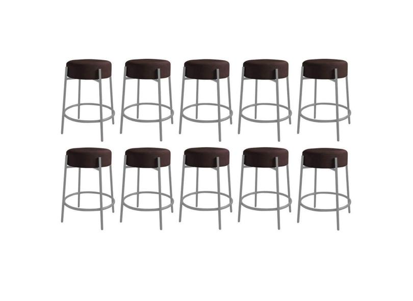 O menor preço encontrado no Brasil para Kit 10 Banquetas Alta Sintra 65cm Redonda Ferro Cinza Suede Marrom - Ahazzo Móveis atualmente é R$ 2.699,90.