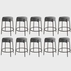 Kit 10 Banquetas Alta Sintra 65cm Redonda Ferro Cinza Suede Marrom - Ahazzo Móveis