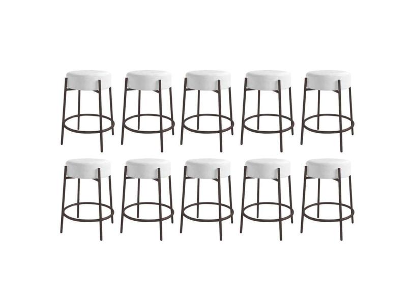 Kit 10 Banquetas Alta Sintra 65cm Redonda Ferro Marrom Suede Branco - Ahazzo Móveis