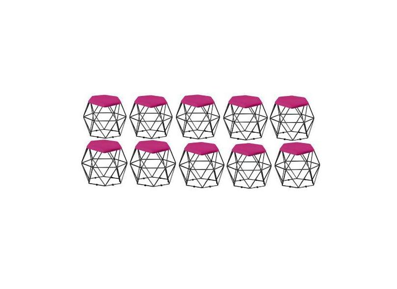 Kit 10 Puff Banqueta Aramado Mila Base Preta Hexágono Suede Pink - DAM