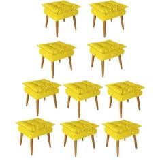 Kit 10 Puff Puf Banqueta Opala Para Quarto Sala Recepção Suede Amarelo