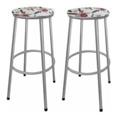 Kit 2 Banco Banqueta Alta Sem Encosto - Moveraço, Prata, Assento Orquí