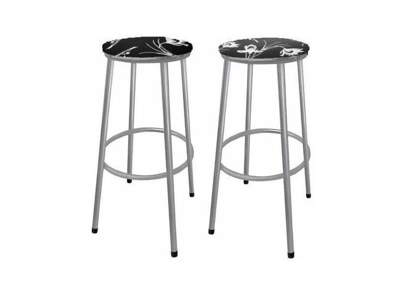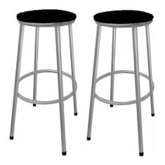 Kit 2 Banco Banqueta Alta Sem Encosto - Moveraço, Prata, Assento Preto