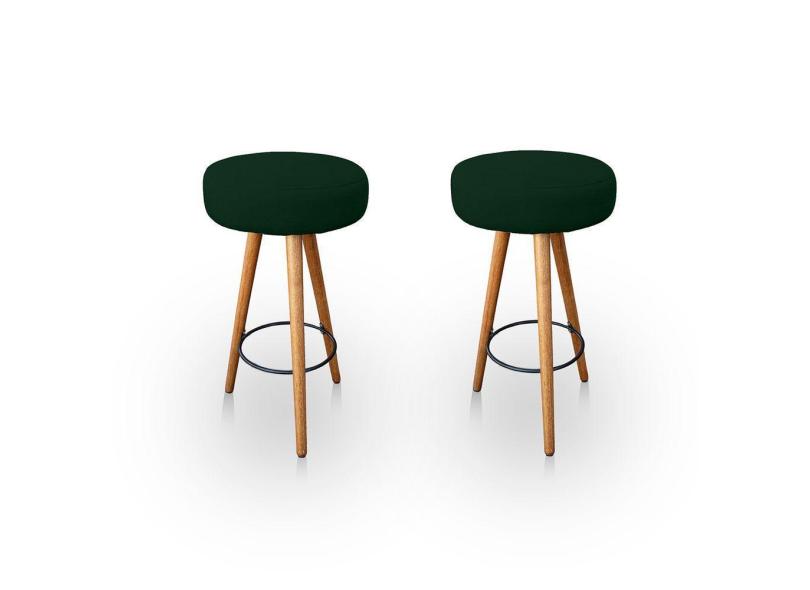 Kit 2 Banqueta Alta Redonda Cozinha e Sala Suede Verde- Jylcrom