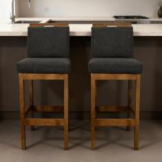Kit 2 Banqueta Alta Rubi Para Cozinha De Madeira Maciça Estofada Com E