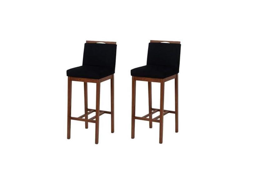 Kit 2 Banqueta Bistrô Berlim Pé Alto em Madeira Maciça de Eucalipto Verniz Veludo marrom e preto