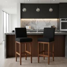 Kit 2 Banqueta Para Cozinha Alta De Madeira Maciça Eucalipto Estofada