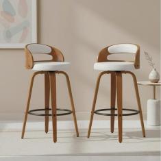 Kit 2 Banqueta para Cozinha Alta Giratória Madeira Roma Branco/Marrom