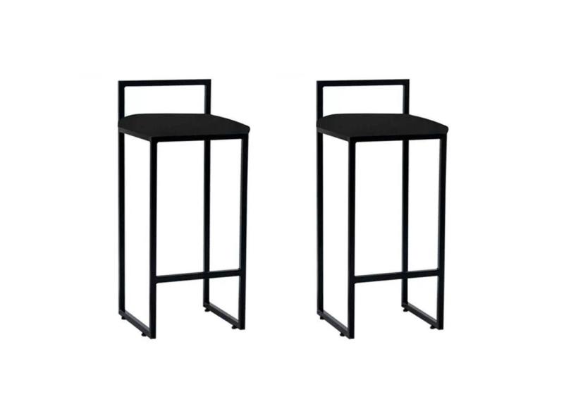 Kit 2 Banquetas Alta Aço Preta Assento Preto Preto