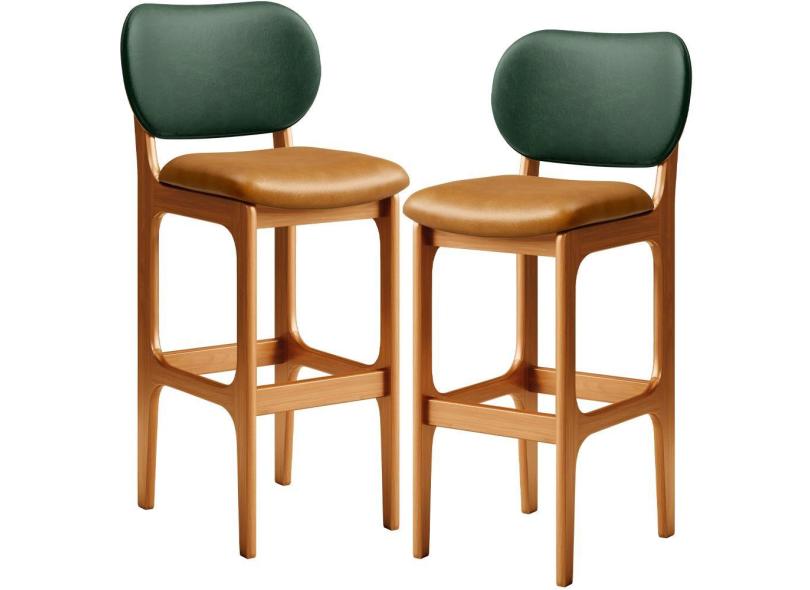 Kit 2 Banquetas Alta Bar Cozinha Jantar Betta L02 Imbuia Couríssimo Whisky Facto Verde - Lyam Decor