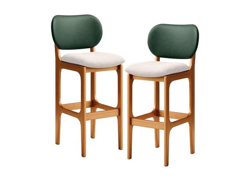 Kit 2 Banquetas Alta Bar Cozinha Sala Jantar Betta L02 Imbuia Facto Verde Linho Cru - Lyam Decor