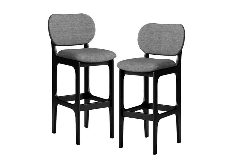 Kit 2 Banquetas Alta Bar Cozinha Sala Jantar Fixa Betta L02 Preto Linho Cinza Escuro - Lyam Decor
