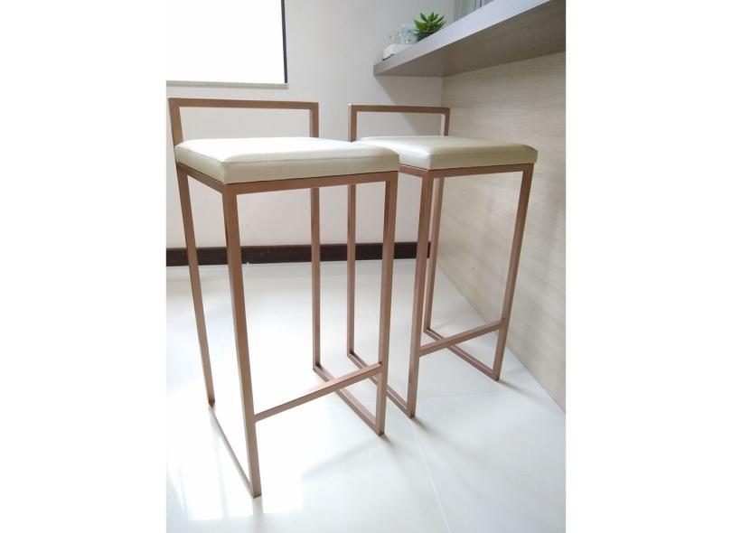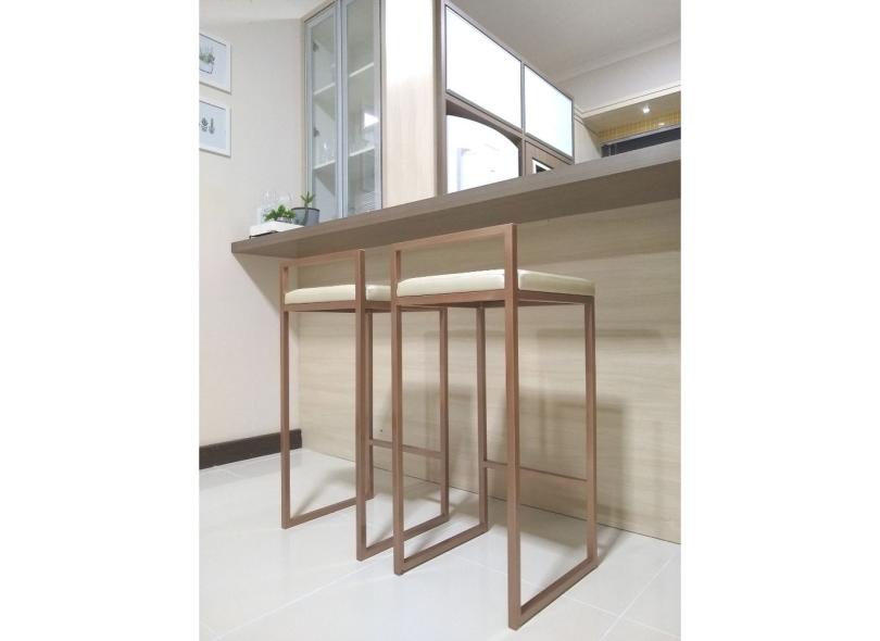 KIT 2 Banquetas Alta de Ferro com estofado - Cozinha bar bancada - Industrial