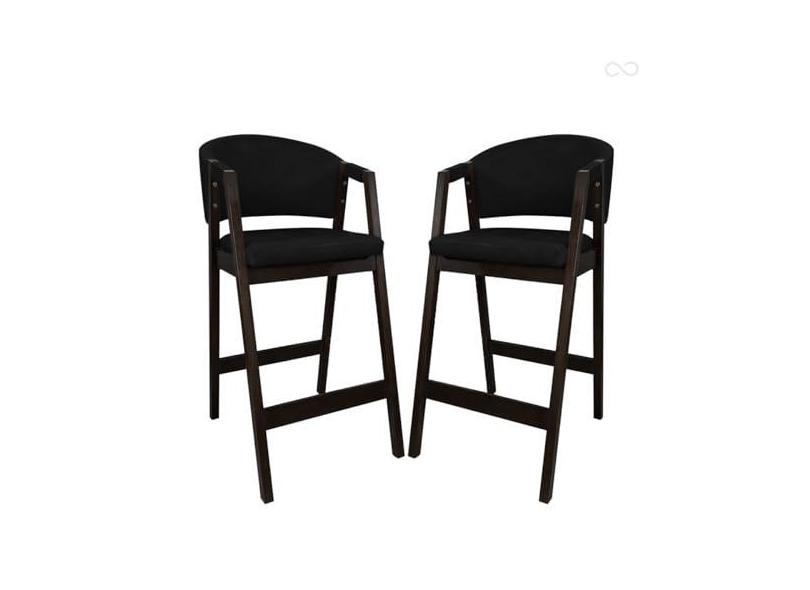 Kit 2 Banquetas Alta de Madeira Maciça Capuccino Ravena com Encosto Sintético Preto CCS