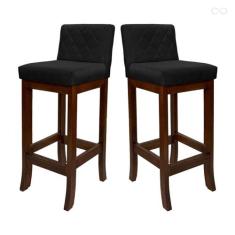 Kit 2 Banquetas Alta de Madeira Maciça Tóquio com Encosto Matelassê Su