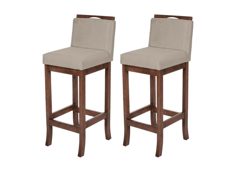Kit 2 Banquetas Alta em Madeira Capuccino Turim Suede Bege CCS