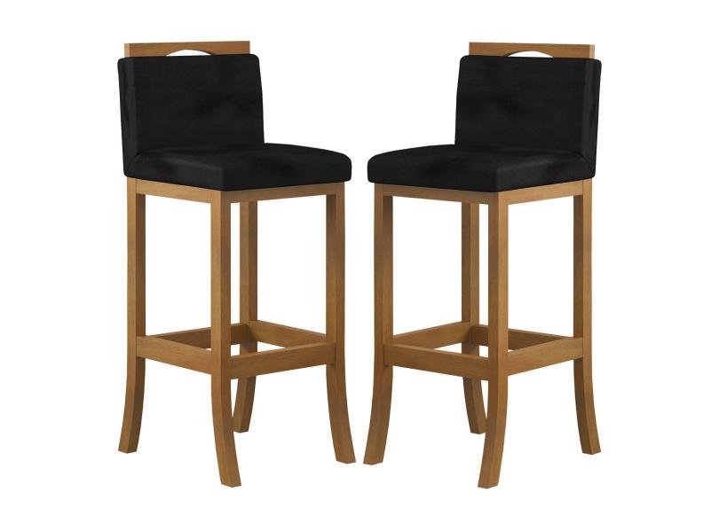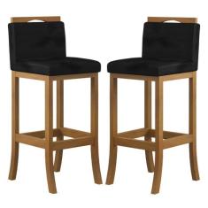 Kit 2 Banquetas Alta Encosto Estofado 38x102 Cm Ilha Turim Madeira Maciça Amêndoa Suede Preto CCS