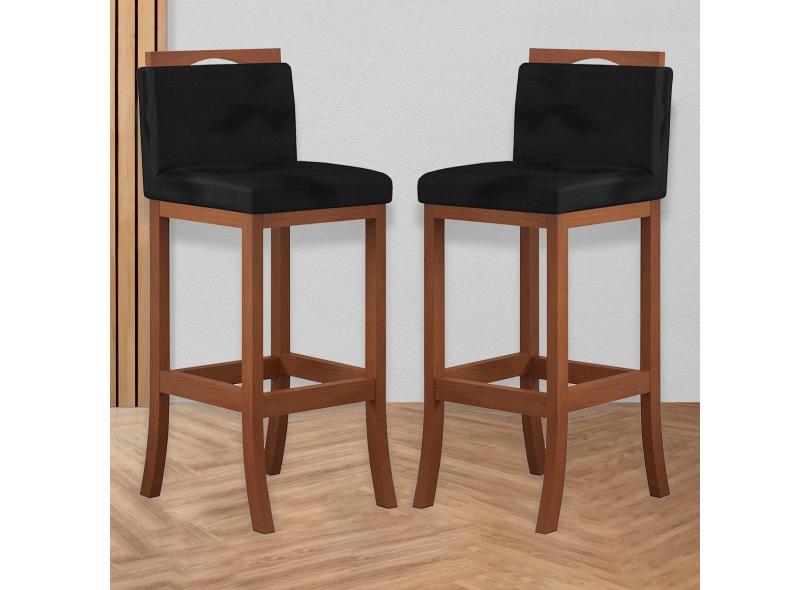 Kit 2 Banquetas Alta Encosto Estofado 38x102 Cm Turim Madeira Maciça Castanho Suede Preto CCS