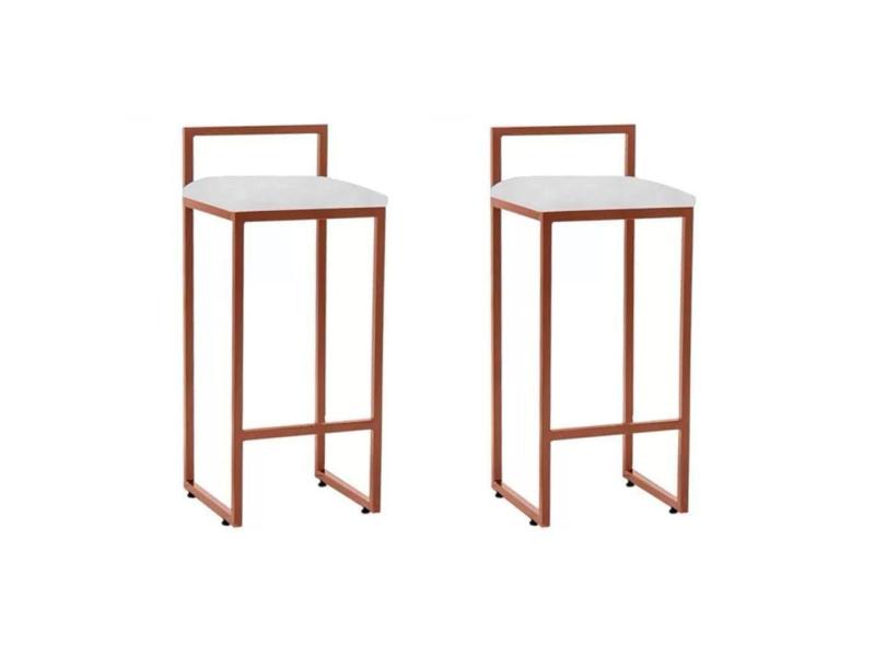 Kit 2 Banquetas Alta Industrial Bar Cozinha Bistrô Aço Dori Cobre Assento Suede Branco - Preto
