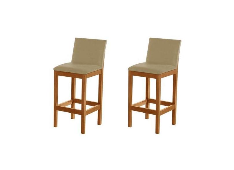 Kit 2 Banquetas Alta Luxo Pérola com Encosto Estofada em Veludo Bege Madeira Maciça Castanho