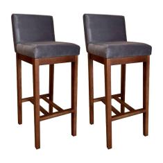 Kit 2 Banquetas Alta Moderna Estofada Lisboa 100 Cm Madeira Maciça Suede Cinza CCS