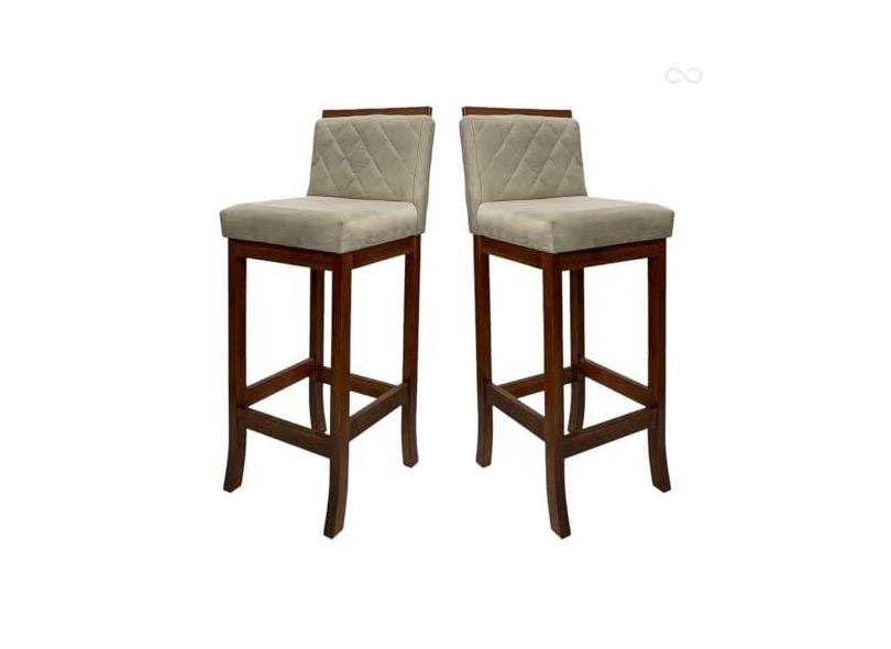 Kit 2 Banquetas Alta para Ilha de Cozinha Nice Madeira Castanho Matelassê Suede Bege CCS
