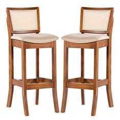 Kit 2 Banquetas Alta Portugal com Encosto Rattan Estofada Linho Bege M58 RMI