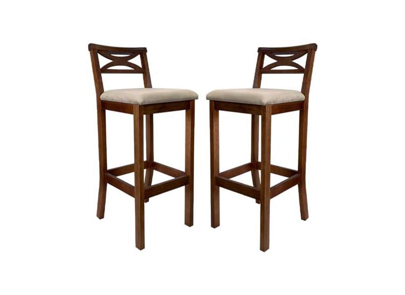 Kit 2 Banquetas Alta X Estofada 38x104Cm Ilha Encosto Madri Madeira Maciça Castanho Suede Bege - CCS