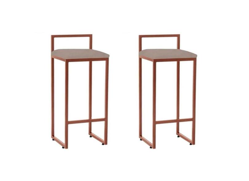 Kit 2 Banquetas Altas Bistô Bar Em Aço Cobre Assento Bege