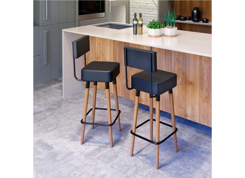 Kit 2 Banquetas Altas Estofadas Florença Preta - Adz