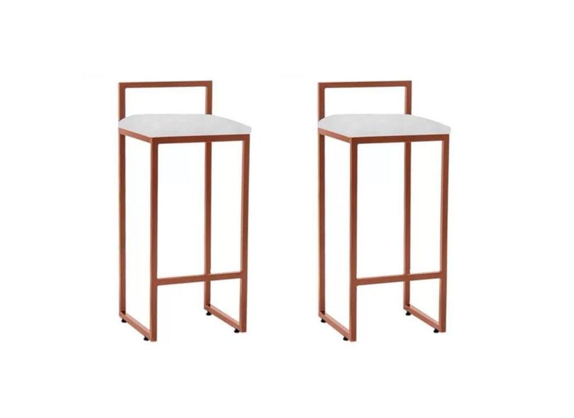 Kit 2 Banquetas Altas Industriais Em Aço Dori Cobre Assento Corino Branco - Preto