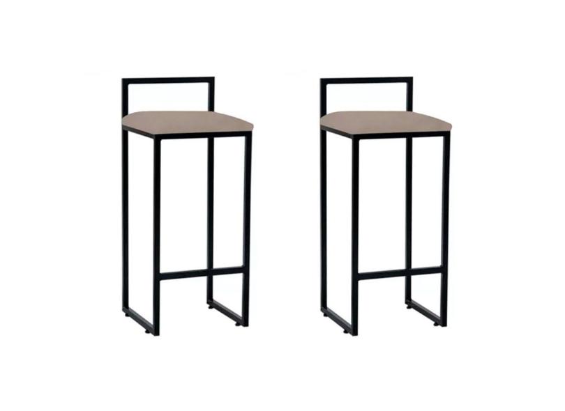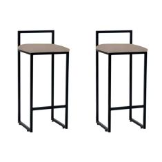 Kit 2 Banquetas Altas Industriais em Aço Dori Preto Assento Suede Bege