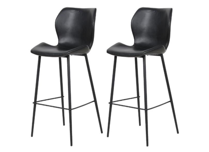 Kit 2 Banquetas Altas Itajaí Rivattis Madeira Revestida Em Poliuretano (Pu) Preto Base Metal