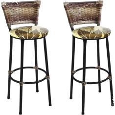O menor preço encontrado no Brasil para Kit 2 Banquetas Altas Preta com Encosto Junco Capuccino Assento Floral Marrom atualmente é R$ 231,97.