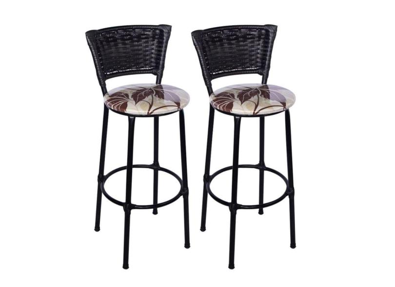 O menor preço encontrado no Brasil para Kit 2 Banquetas Altas Preta com Encosto Junco Preto Assento Floral Marrom atualmente é R$ 242,97.