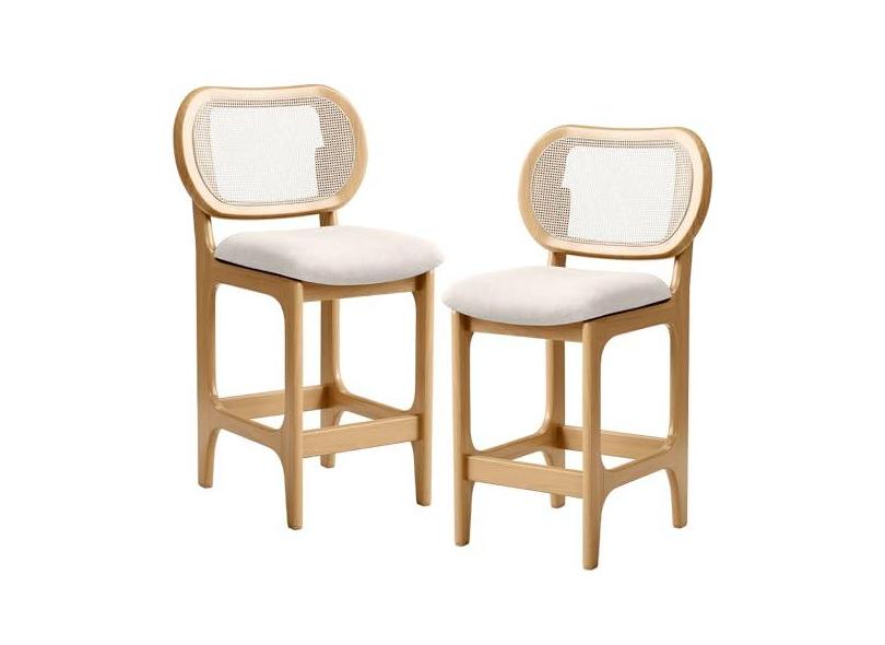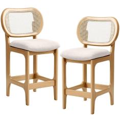 Kit 2 Banquetas Baixa Bar Cozinha Sala de Jantar Betta L02 Mel Tela Linho Cru - Lyam Decor