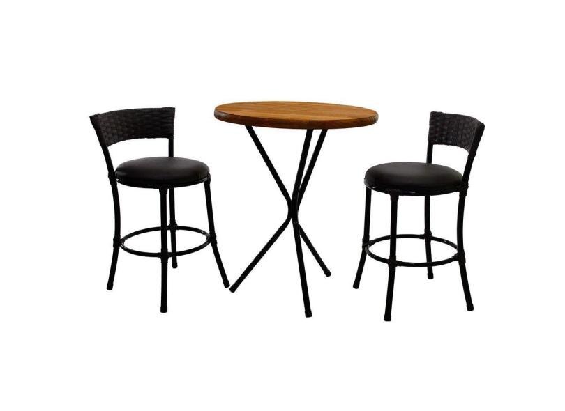 Kit 2 Banquetas Baixas e Bistrô Baixo Forts Fibra Sintética Acesse Móveis