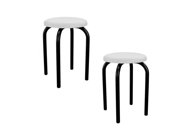 Kit 2 Banquetas Baixas Empilháveis Em Aço Maviê Sintético Branco/preto