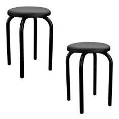 Kit 2 Banquetas Baixas Empilháveis em Aço Maviê Sintético Preto - Mpoz