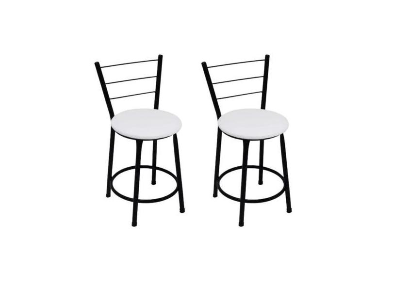Kit 2 Banquetas Baixas Preta com Encosto Assento Branco - Fortmix